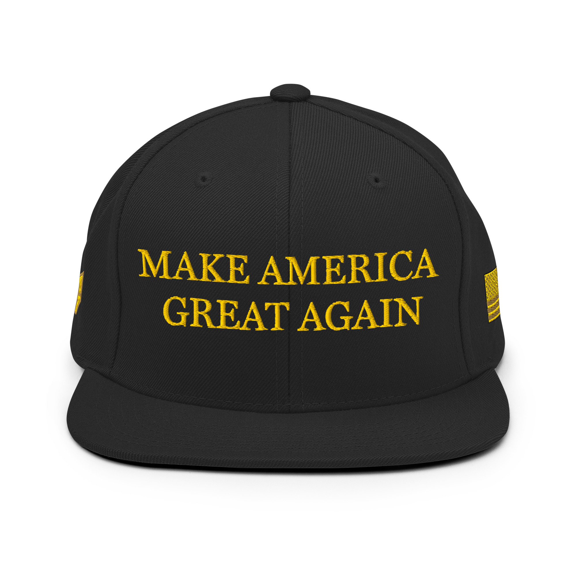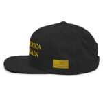 This hat is structured with a classic fit, flat brim, and full buckram. The adjustable snap closure makes it a comfortable, one-size-fits-most hat.
