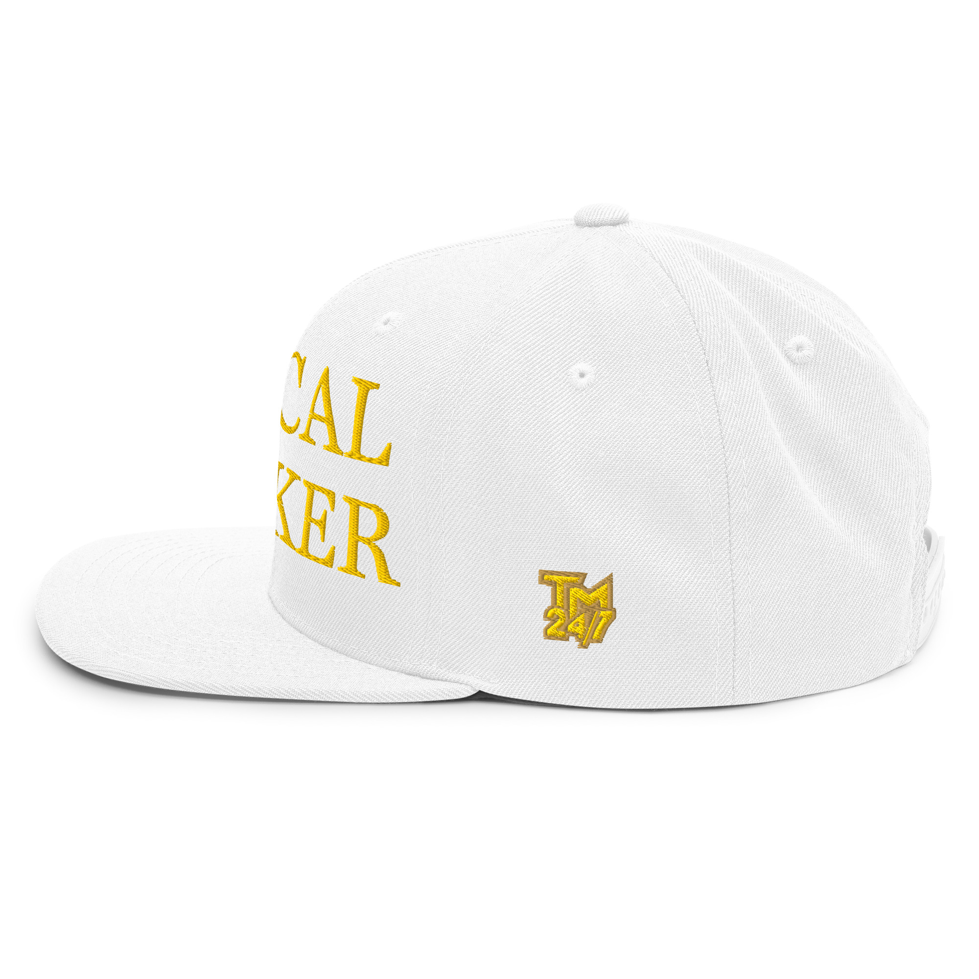 This hat is structured with a classic fit, flat brim, and full buckram. The adjustable snap closure makes it a comfortable, one-size-fits-most hat.